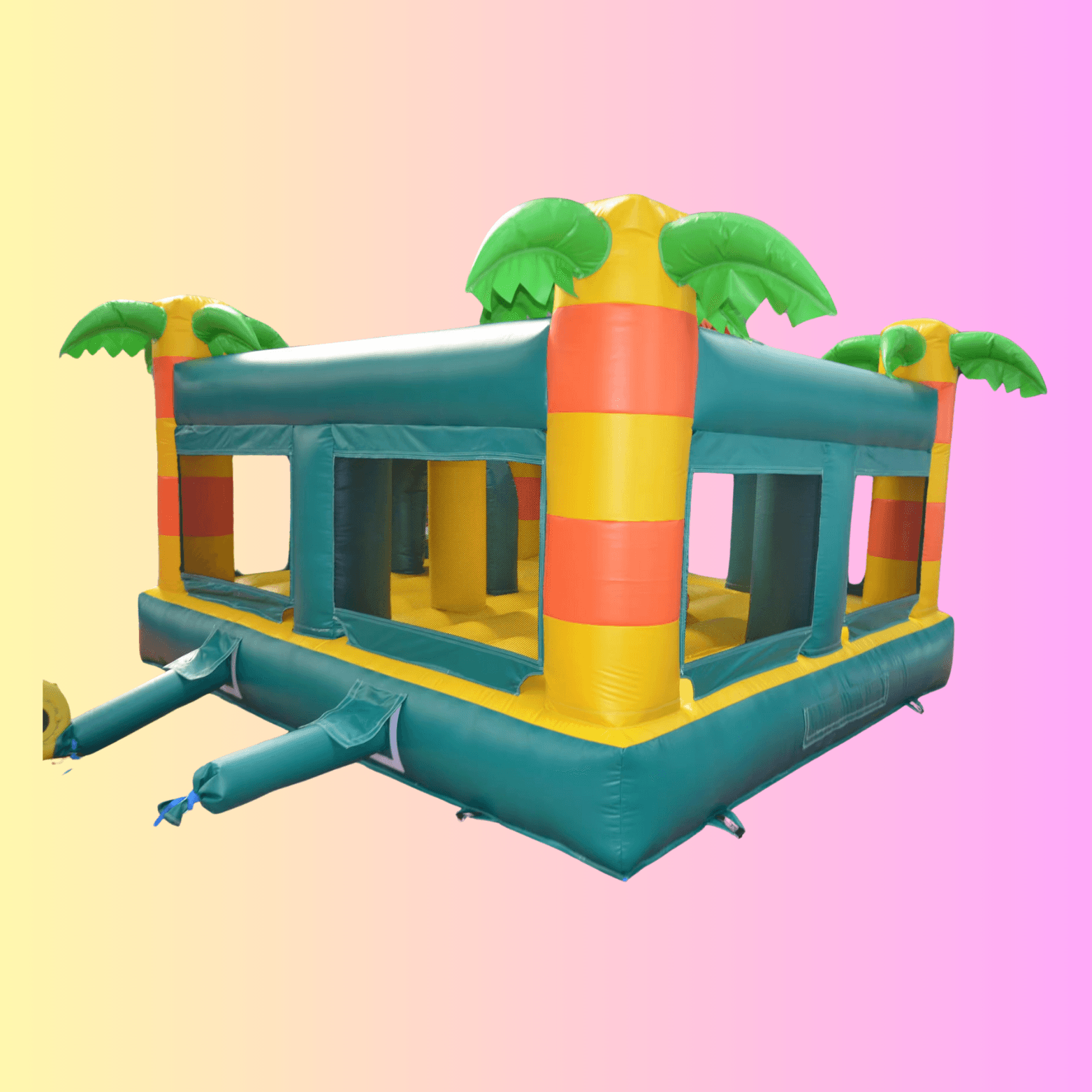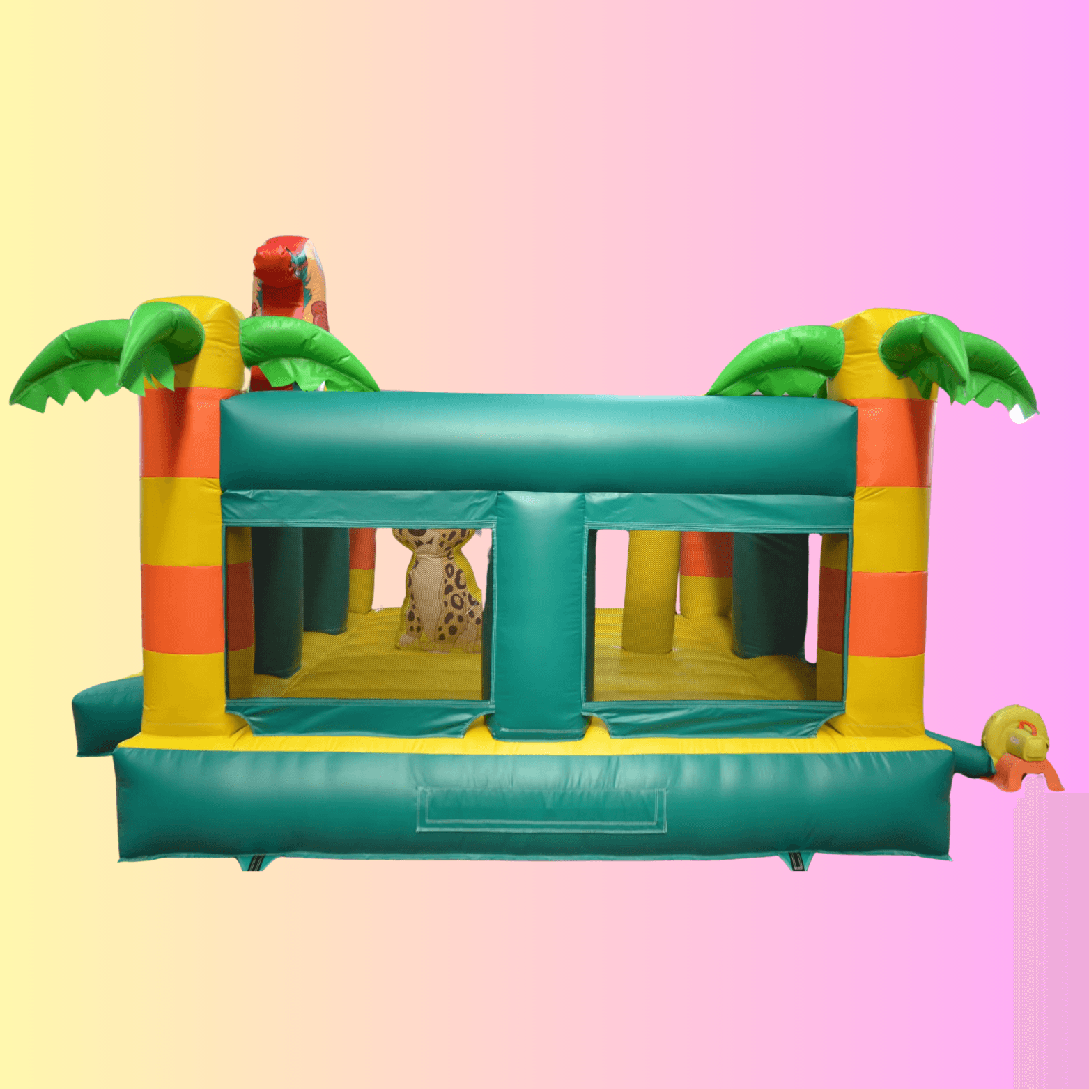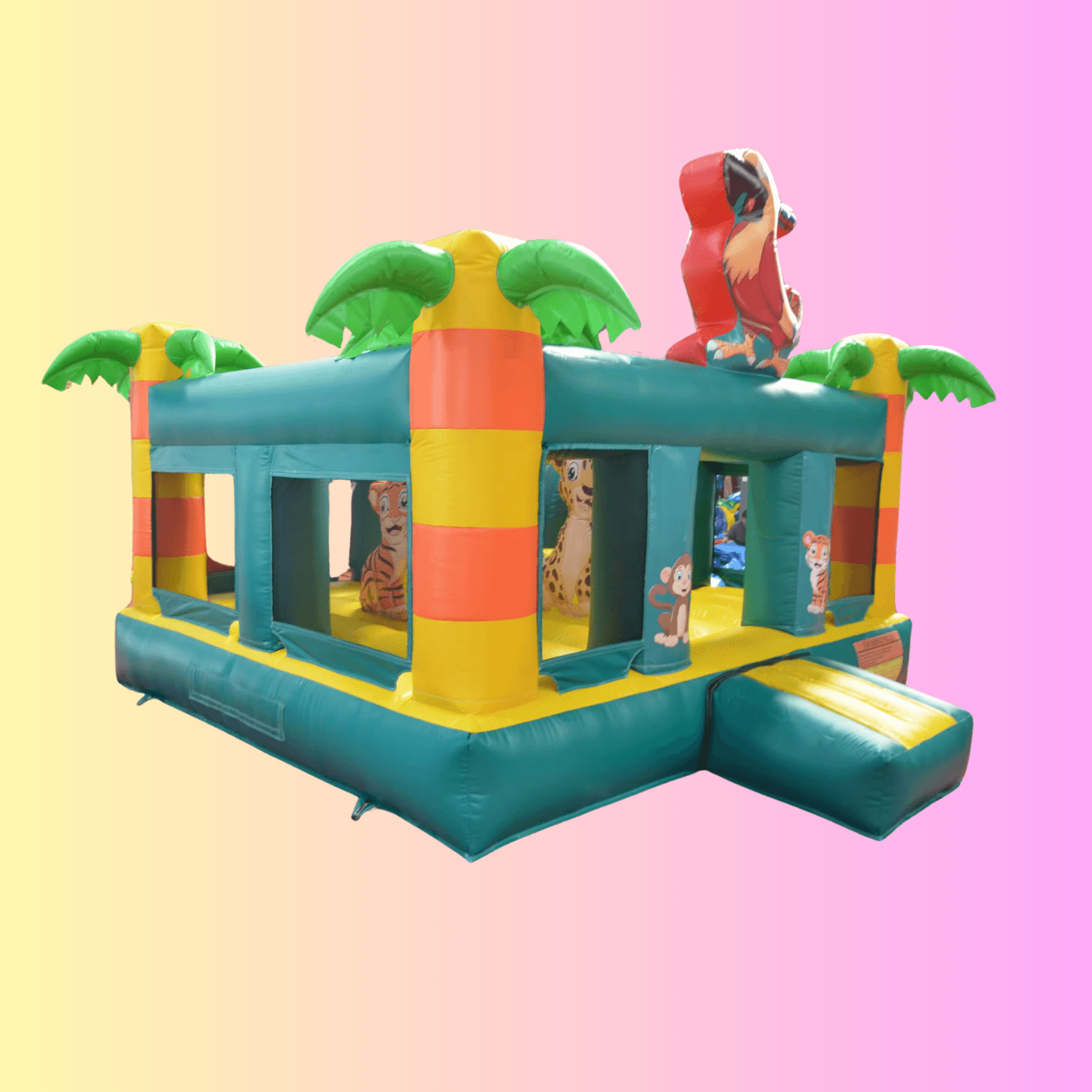 Ein Hauch von Dschungel für deine Feier! Mit buntem Papagei, Palmen und wilden Dschungeltieren bringt diese Hüpfburg echte Urlaubsstimmung in deinen Garten. Perfekt für Sommerpartys, Abenteurer und kleine Naturfans.